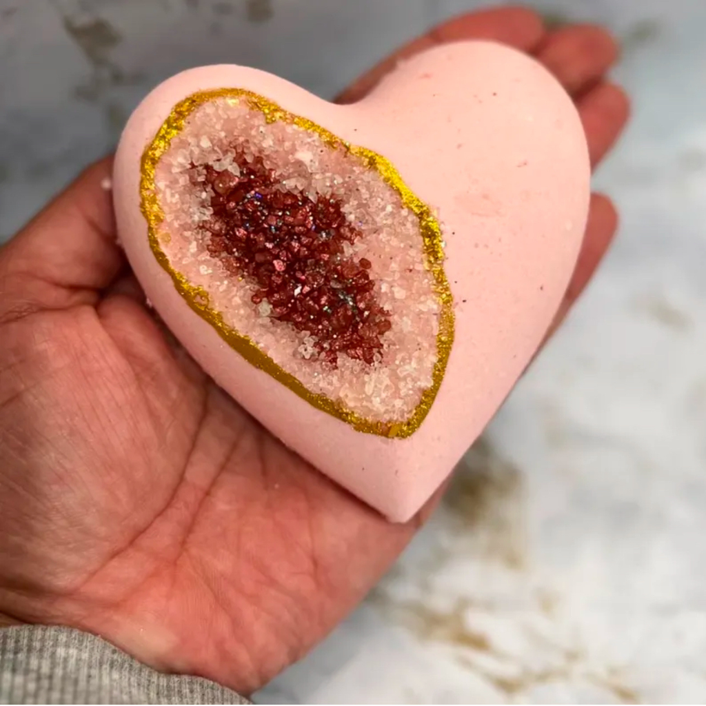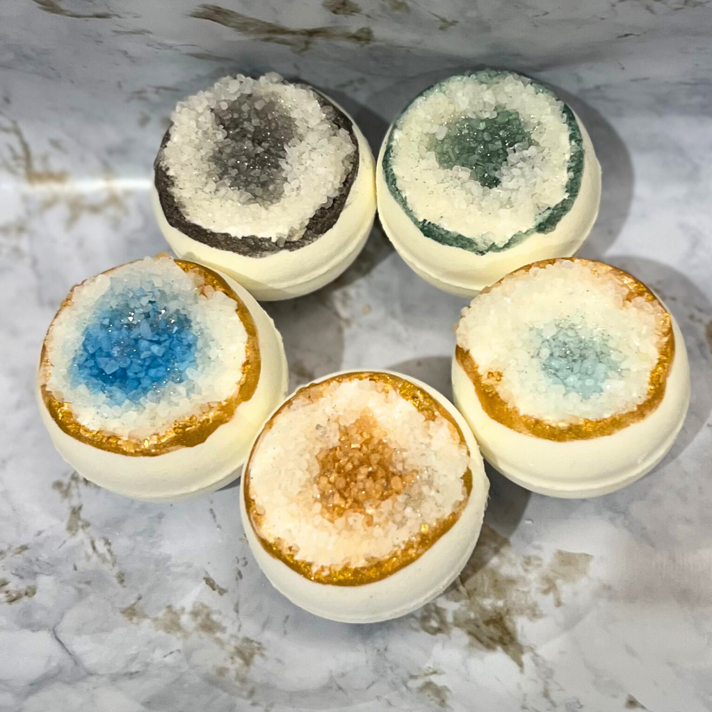These premium 4oz bath bombs are hand-designed & hand-painted to look like beautiful geode crystal rocks. Each geode bath bomb has a premium essential or fragrance oil, fractionated coconut oil, sweet almond oil, & 100% vegan, all-natural ingredients. We pride ourselves on crafting the best bath products to increase your business revenue.