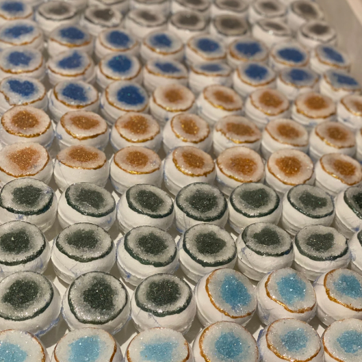 1,000,000 All-natural, vegan, wholesale, geode-designed bath bombs! 10 designs, 10 different scents.