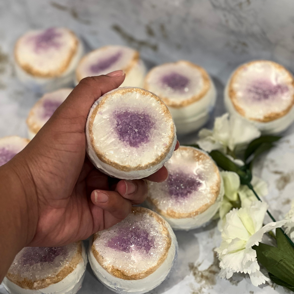 A regal bath bomb made for queens like you! This beauty is scented with the fragrance oil Pineapple Mango. We infused coconut oil into each batch so your skin will be soft, hydrated, and smell AMAZING!