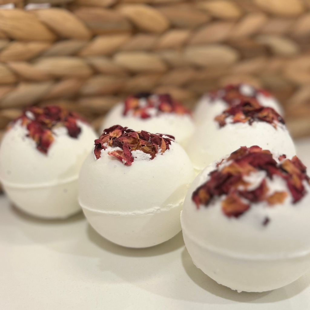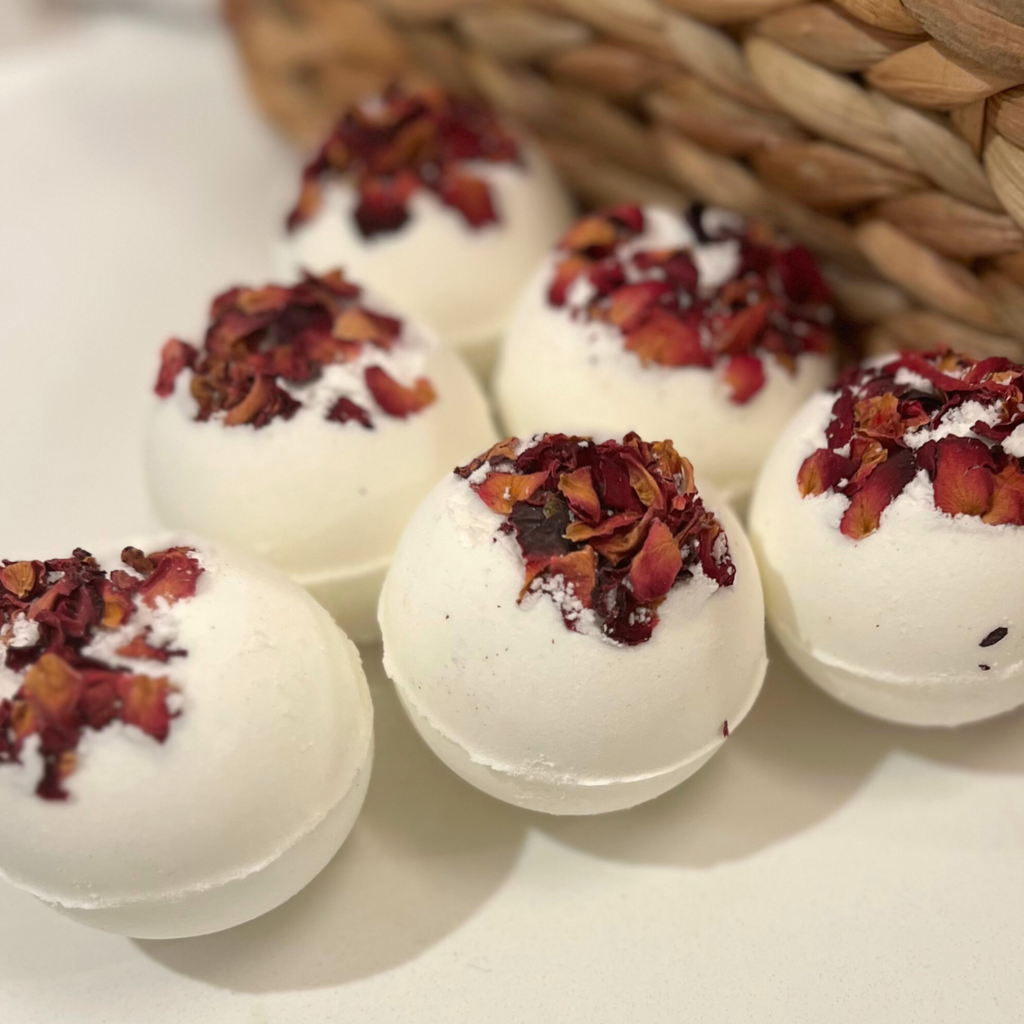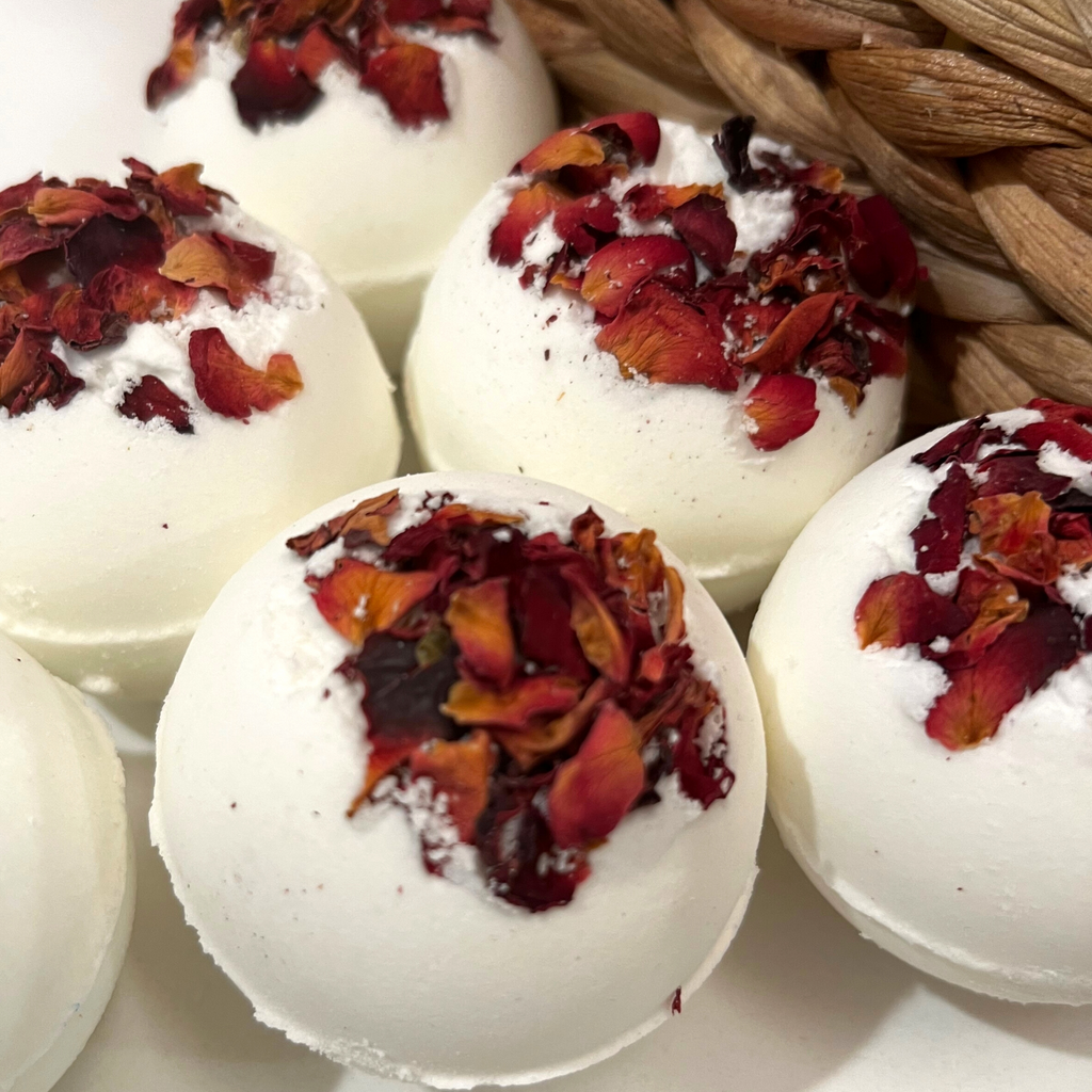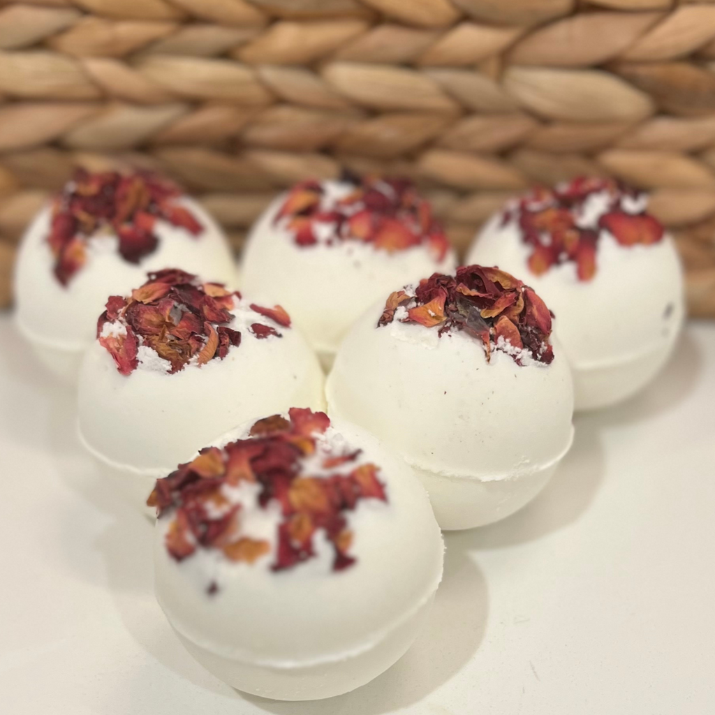 This gorgeous bath bomb is made with dried rose petals, a luxurious bathing experience you will want to relive daily. Infused with gentle scents and moisturizing oils, you will leave your bath feeling soft, luscious, and relaxed! Made with the fragrance oil of your choice for the perfect bath.